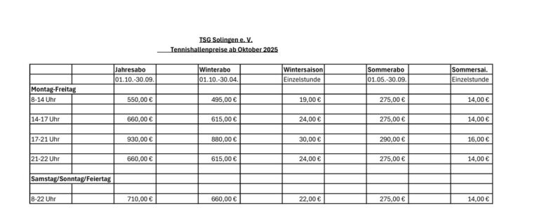 Tennishallenpreise